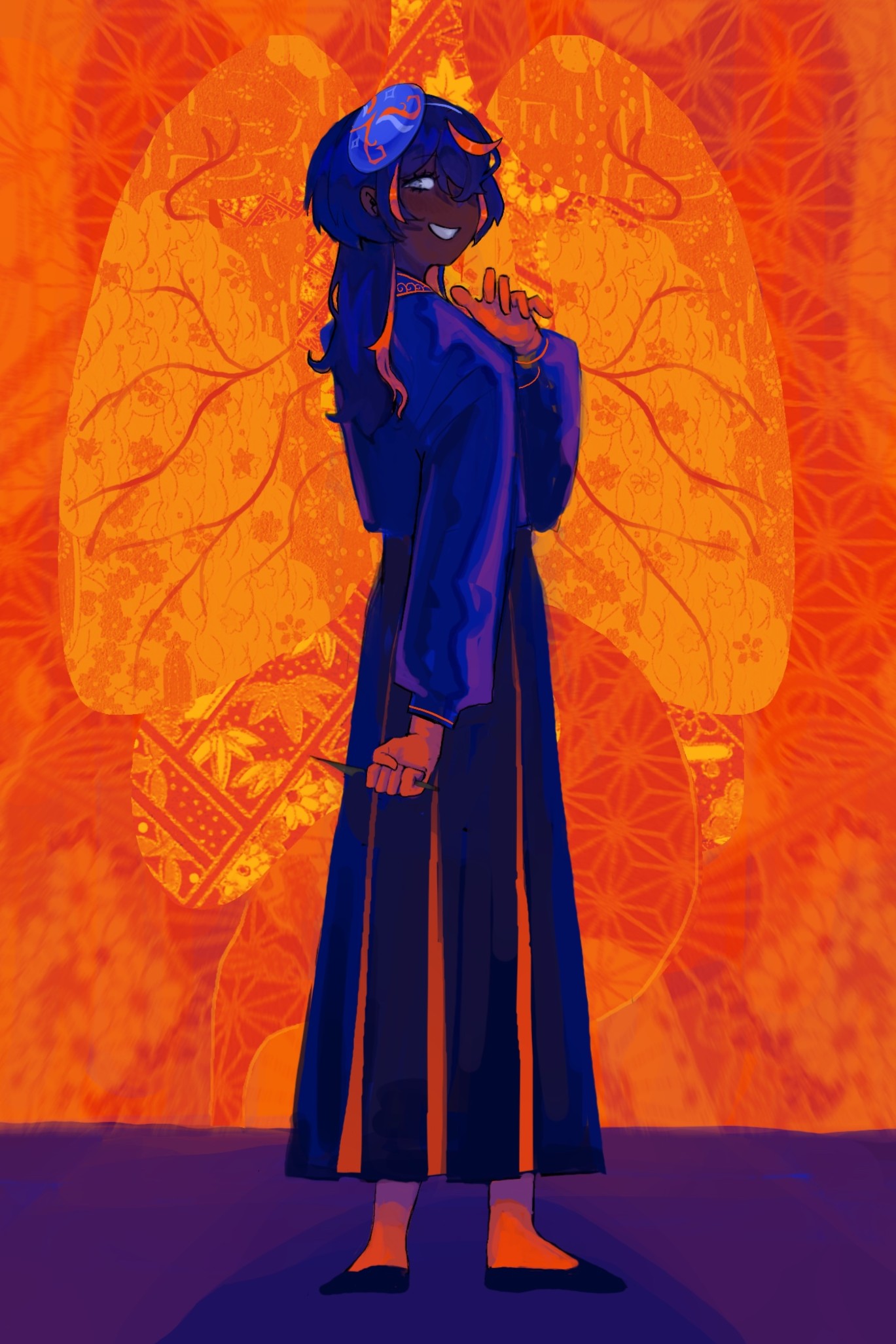Mengxi has a lighthearted and nonchalant personality, and never seems to take anything seriously. She generally regards other people with a sense of boredom and mild amusement. However, she is very passionate about certain things, such as her art. Making art is one of the few occasions where she feels alive, which is apparent in her giddier, more manic mannerisms. While hosting exhibitions or doing live demonstrations, she takes on a theatrical, sadistic persona.